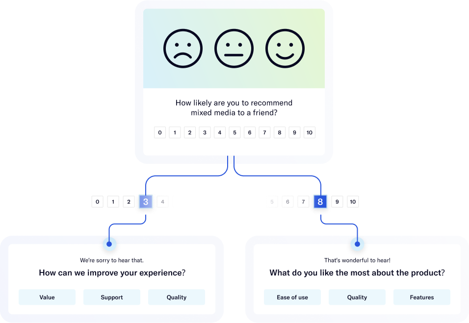 - If they submit a positive or high score, branch them to questions about what they enjoyed or how you can further enhance their experience.