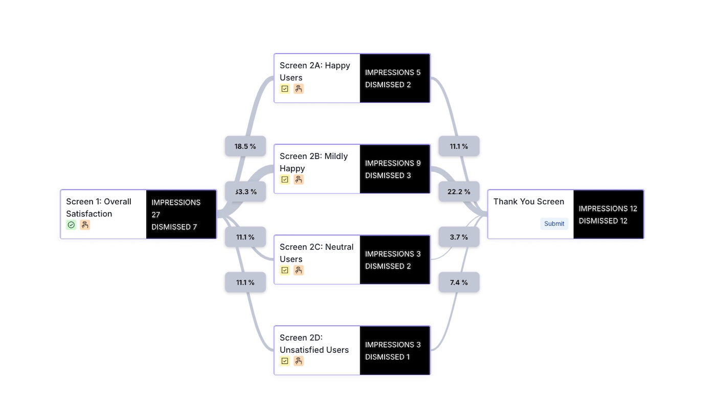 - If they submit a negative or low score, branch them to questions focused on understanding their pain points.