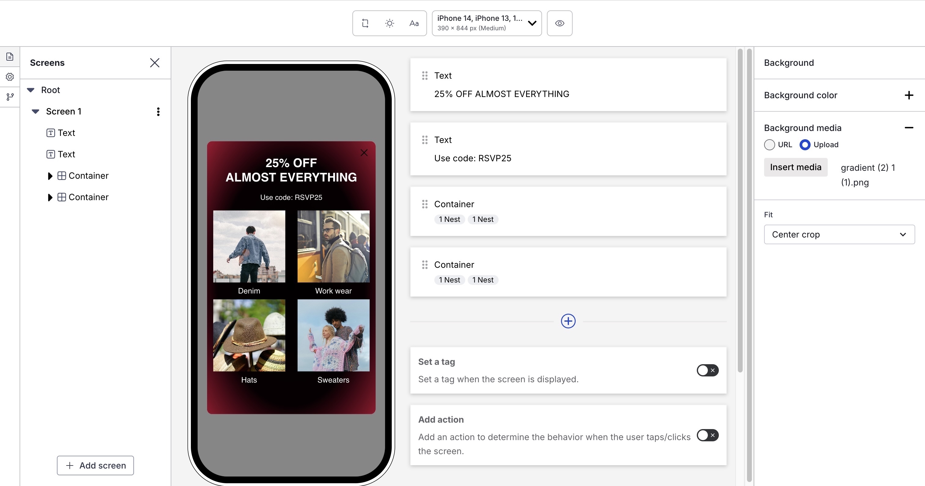 Set up multi-screen in-app experiences, with no development required. AXP